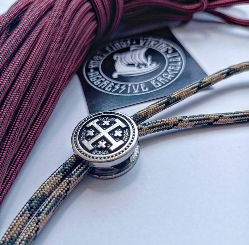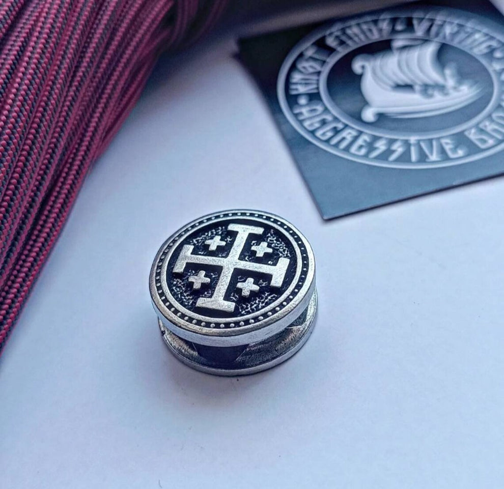 This solid stainless steel Jerusalem Cross bead is designed for paracord bracelets, EDC gear, and meaningful handmade jewelry. The bead has a strong, artifact-like presence — made to feel like a small relic rather than mass-produced jewelry hardware.
