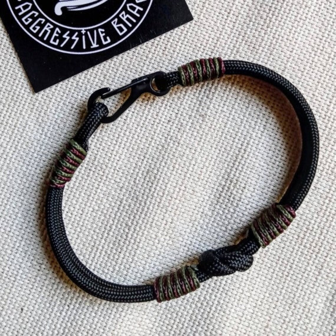 This man celtic bangle is made of paracord of black color and microcord burgundy and green olive color. I can make for you a bracelet from your favorite color of paracord.