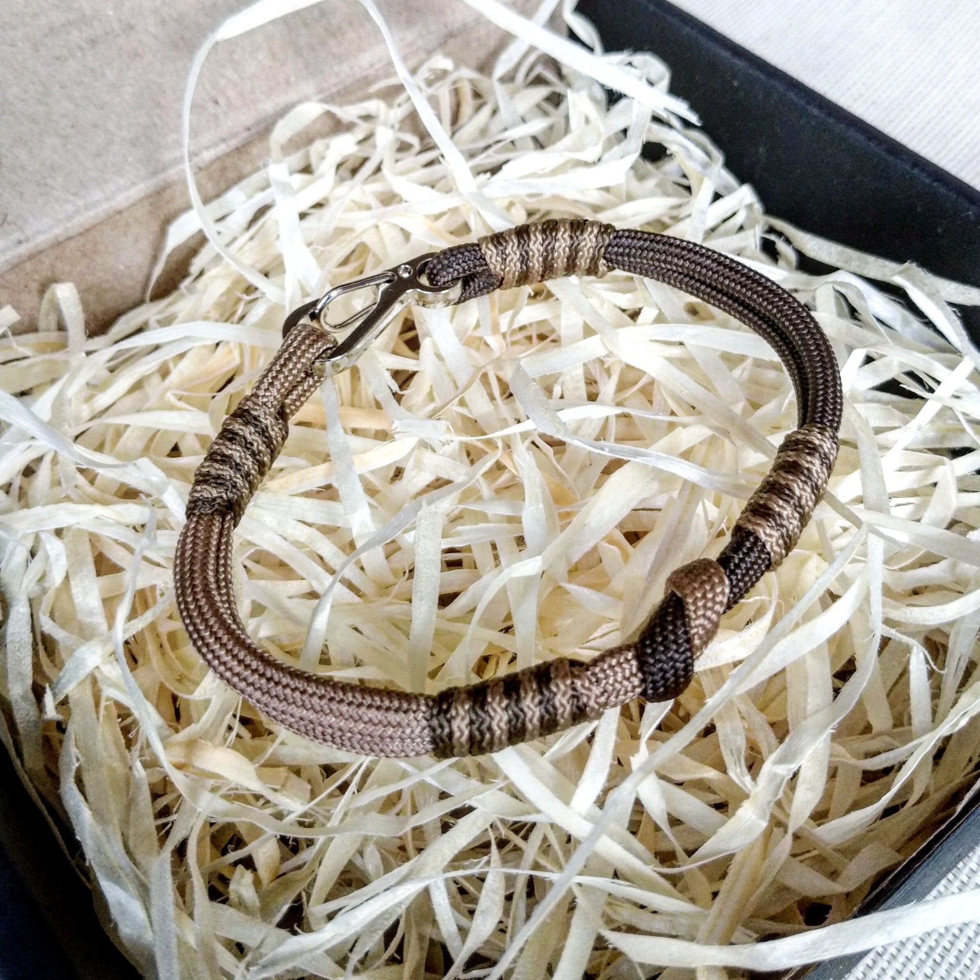 This man celtic bangle is made of paracord of brown, beige, and gold color. I can make for you a bracelet from your favorite color of paracord.